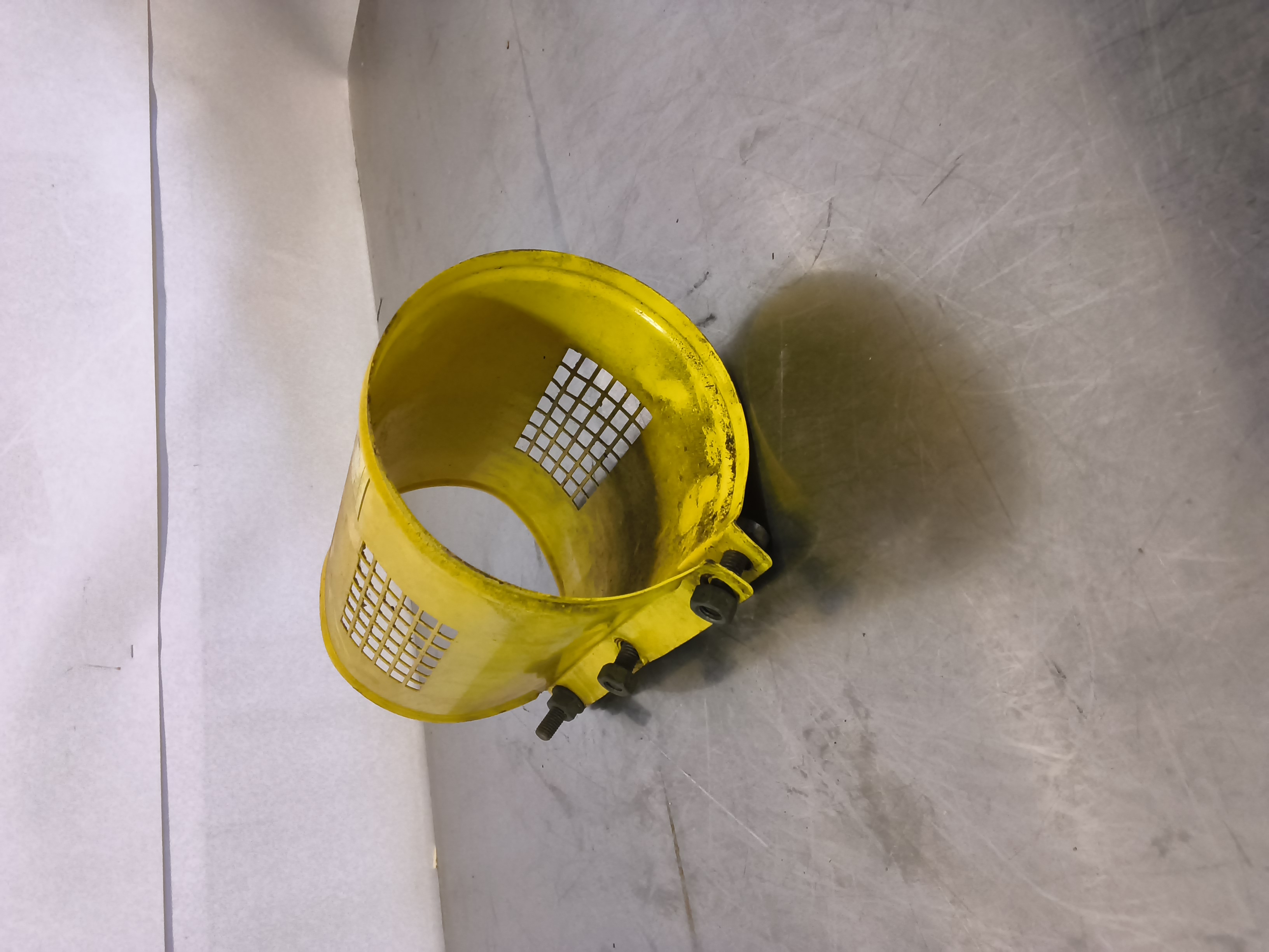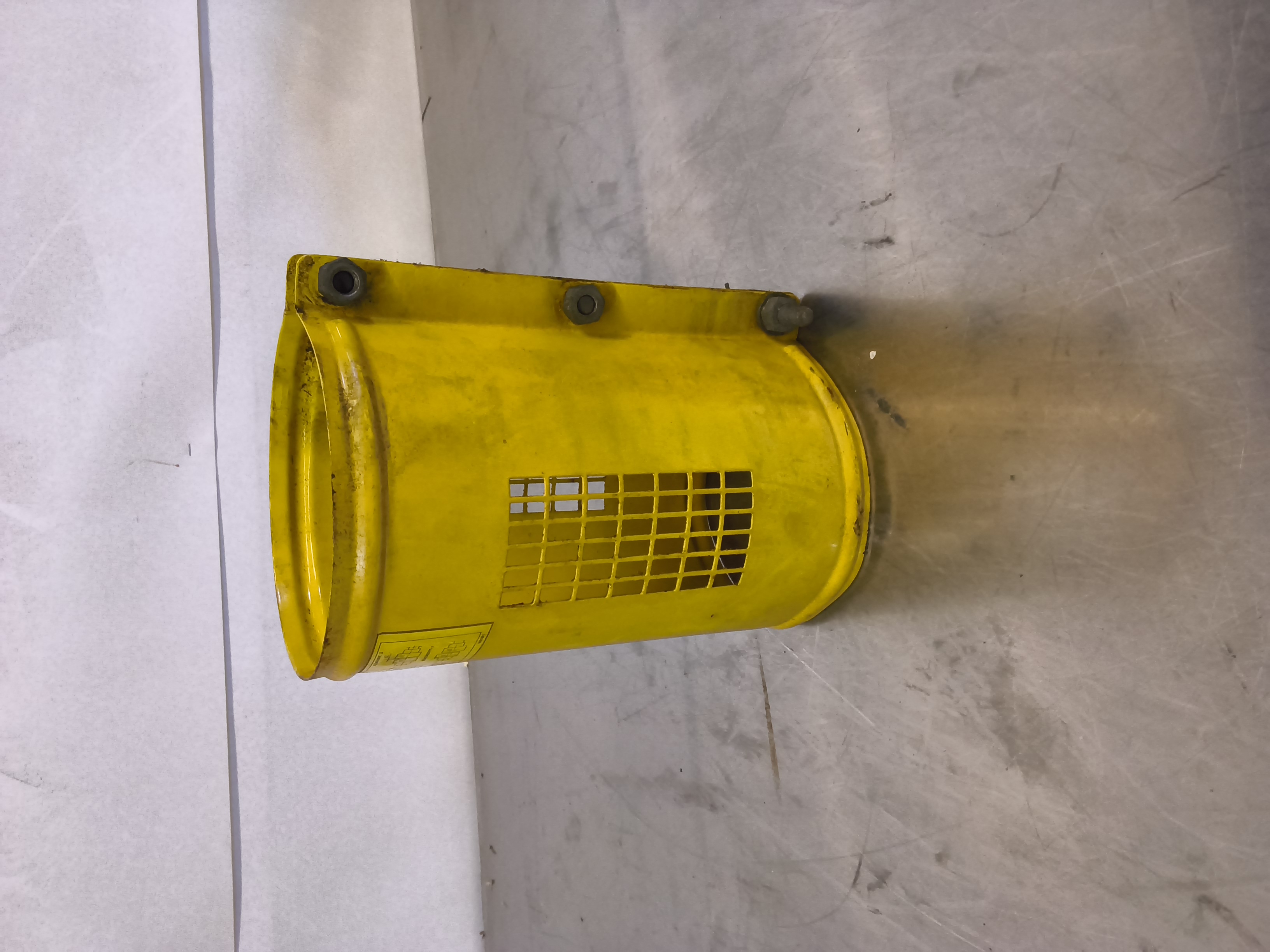 - Pumppukomponentti tai moottorin suojus: Esineen verkkomainen kuviointi ja keltainen väri ovat tyypillisiä myös teollisuusliitinten ja pumppujen suojakuorille.