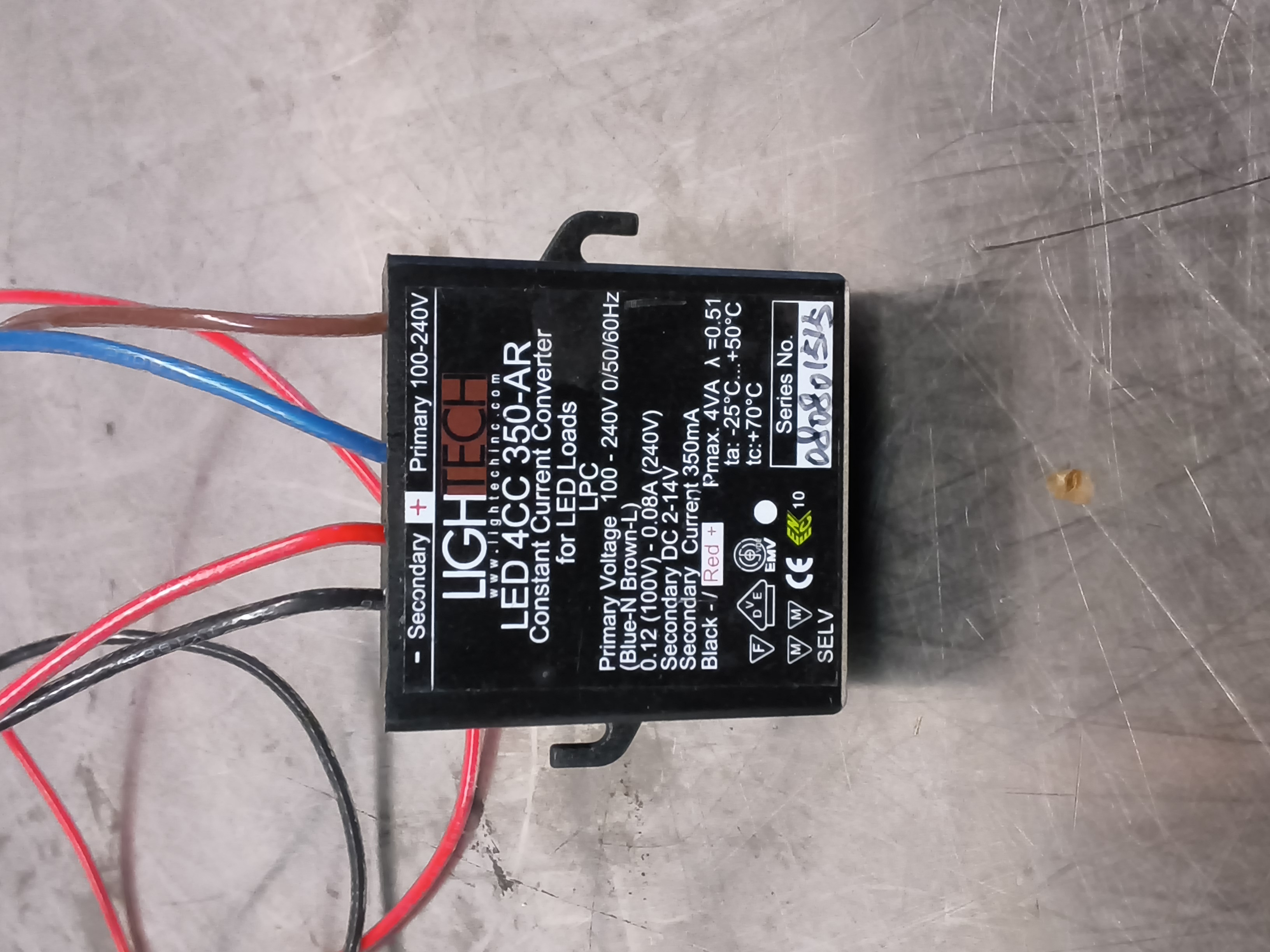 • Toisiojännite (Secondary DC): 2- 14 V (tämä tarkoittaa, että se voi antaa 1-4 sarjaan kytketylle LEDille, joiden kynnysjännite on n. 3 V).