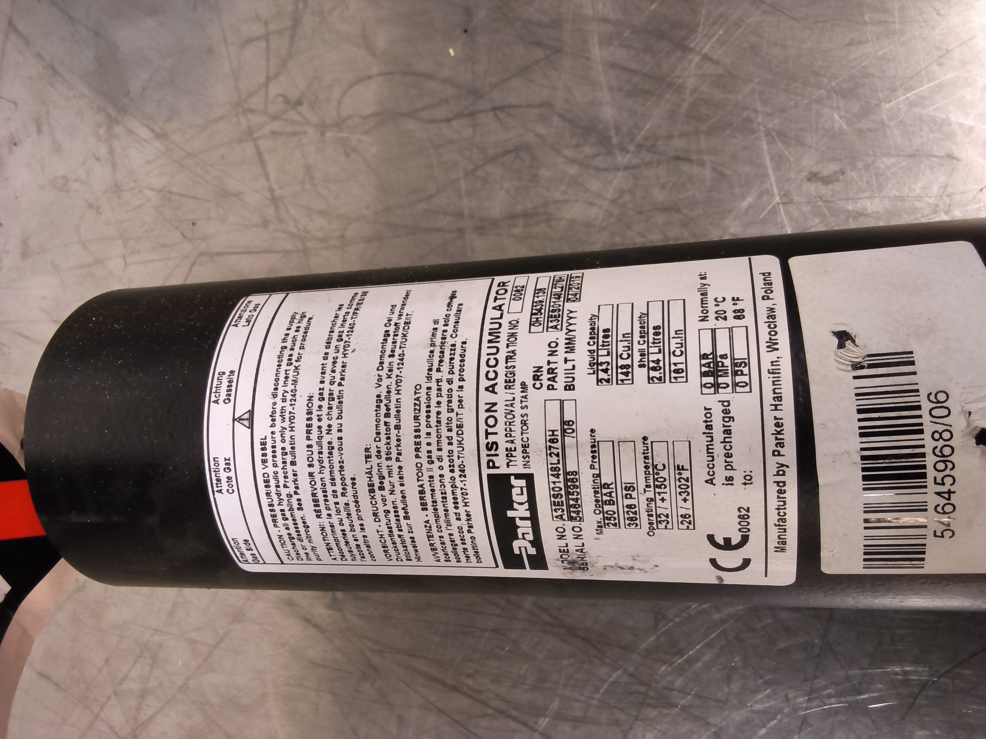 PARKER MÄNTÄ AKKU/ Paineakku/ PISTON ACCUMULATOR