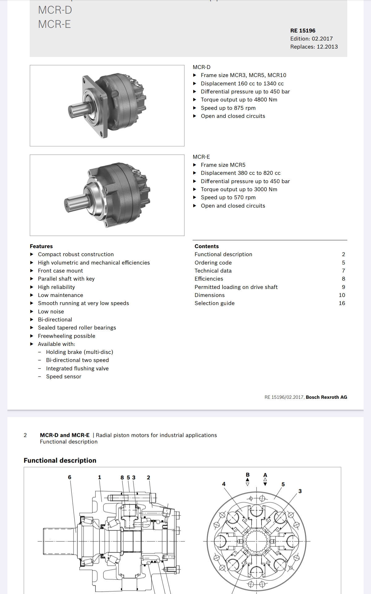 Bosch Rexroth MCR-D- moottorin muita ominaisuuksia ovat: