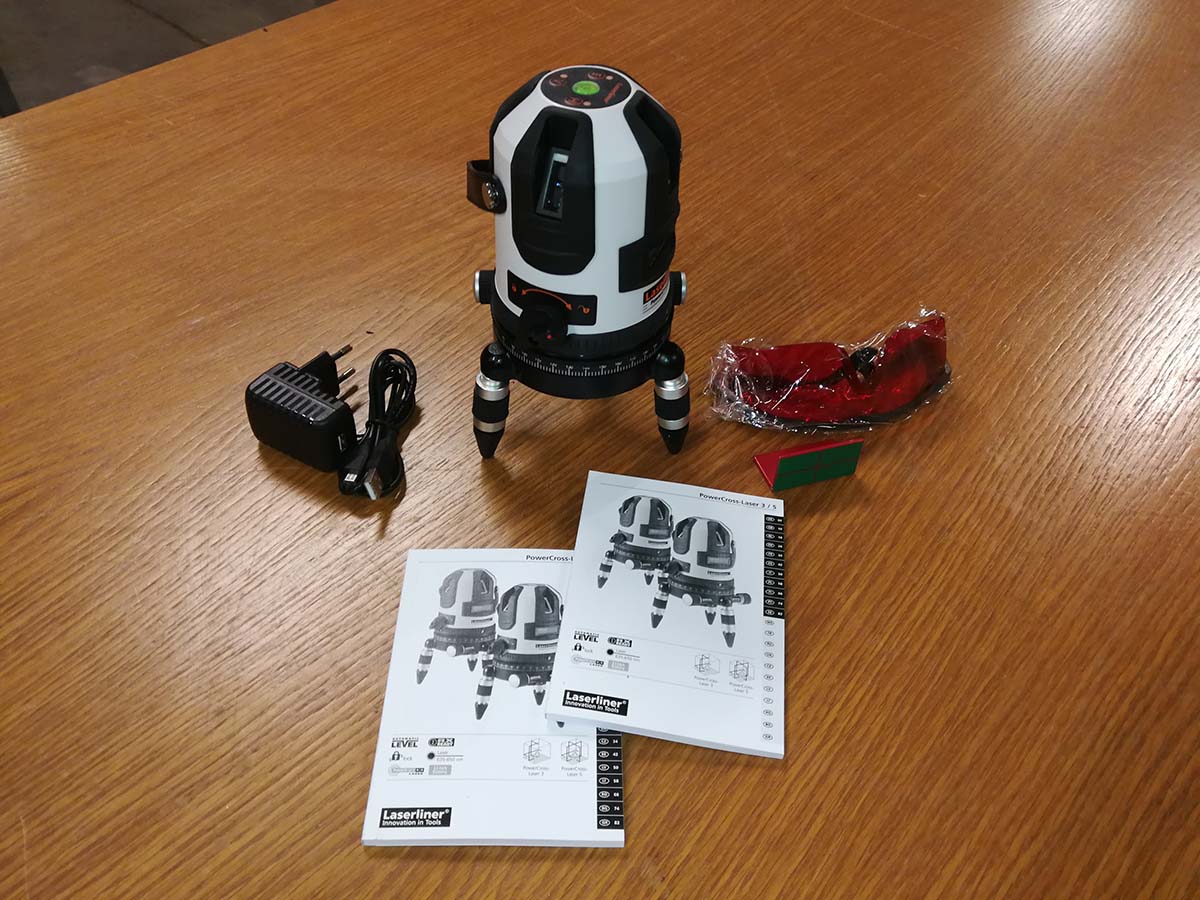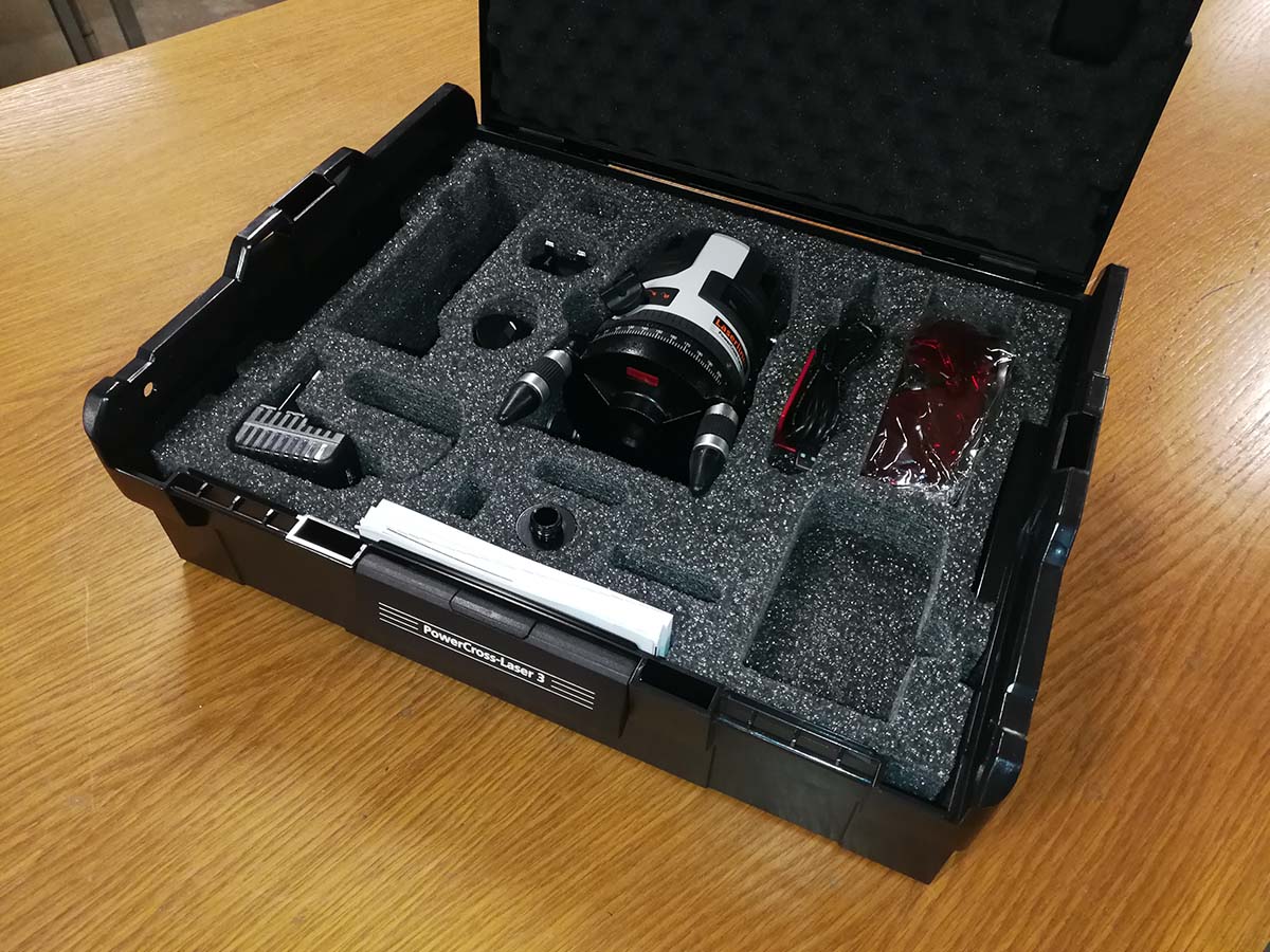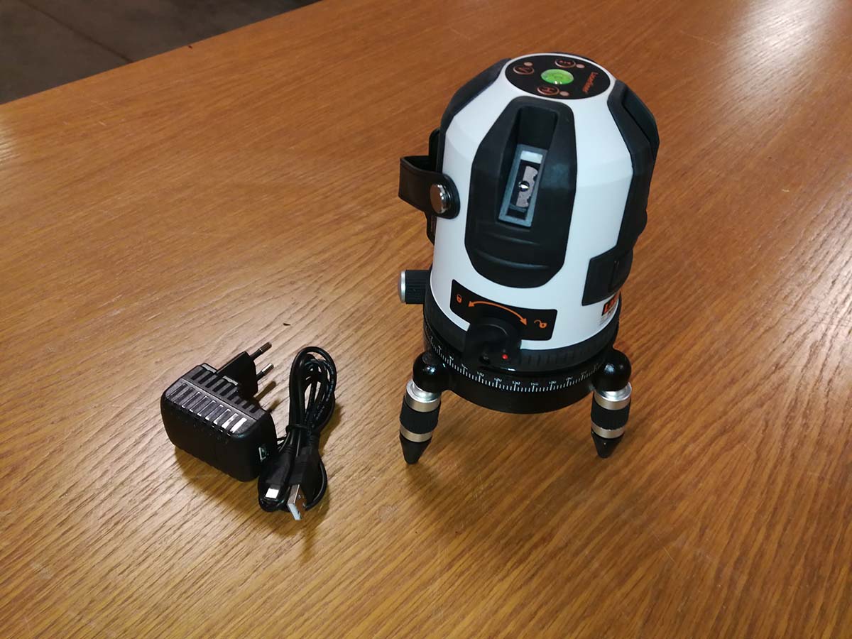 Linjalaser, jossa luotitoiminto ja lisänä vertailuviiva