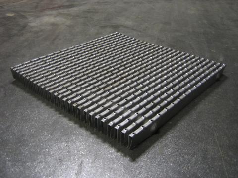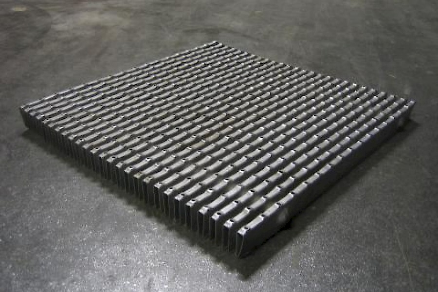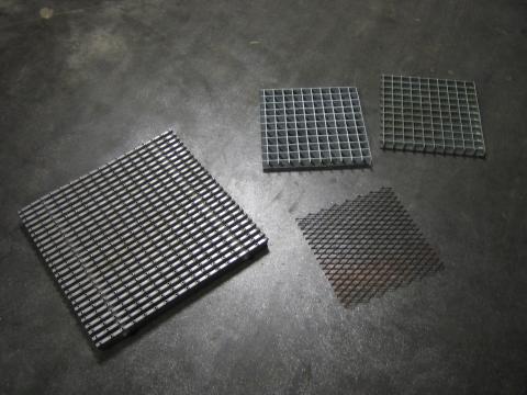 Lisäksi kolme palaa "salmiakkikuvioitua" metalliverkkoa, mitat 29 x 29cm.