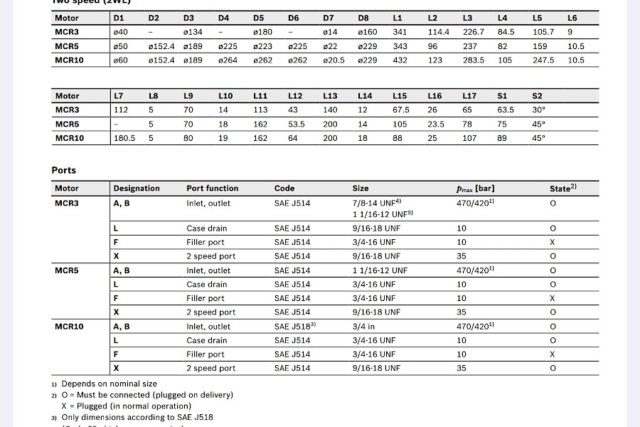 Bosch Rexroth MCR-D- moottorin muita ominaisuuksia ovat: